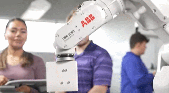 Here is an educational robot made for more advanced students. The ABB IRB 1090 robot has a reach of 580mm and 3.5kg payload. It combines with the OmniCore E10 ultra slim controller for motion control, external guided motion, and more. This robot arm has 3.5kg payload capacity.