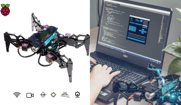 The robot is easy to assemble and comes with easy Python code. You get acrylic plates, Raspberry Pi camera, MPU6050 Gyro Sensor Module, 13 x MG90S servos, 1 x LED headlight, and everything you need to get started.