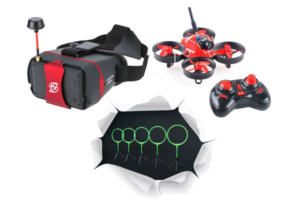So you can’t wait to get started in drone racing? The Aerix Nano FPV Indoor Drone Racing comes with everything you need to get started. It comes with a tiny drone with a video camera, FPV monitor, and neon indoor drone racing hoops. You can race up to 8 Nano FPV drones in the same area.