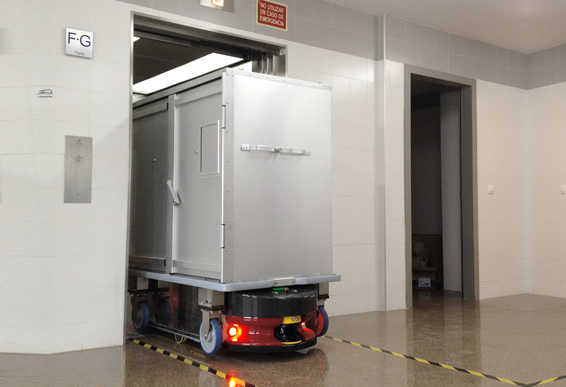 Meet the Robotnik AGVS: an autonomous robot that can transport items indoors with two motors controlling its direction and traction. It has a low profile chassis, so it can roll under containers. The chassis is made of aluminum and steel.