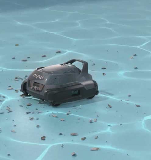 This is the AIPER Seagull Plus: a robotic pool vacuum that can clean above/in-ground flat pools up to 60ft. It has dual-drive motors to clean your pool efficiently, including pools with inclines up to 15 degrees.