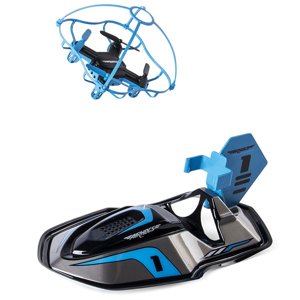 Meet the Air Hogs Hyper Drift Drone: a 2-in-1 vehicle for racing and flying. It lets you race on the ground or fly in the sky with its detachable drone. A self-righting cage is available, so you land upright and can takeoff fast after a crash.