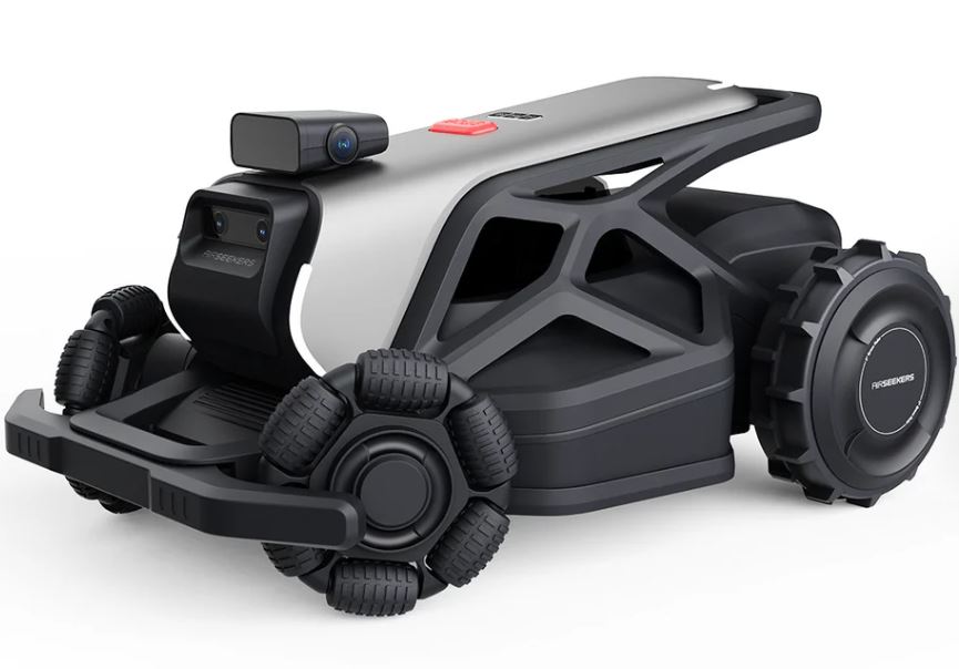 Robotic mowers have come a long way over the years. They don’t require a boundary wire these days. The AIRSEEKERS TRON 2400 features 360-degree AI vision with RTK to get around in your backyard, map it, and avoid obstacles. It has a rugged body with wheels ready for off-road conditions. This robot is IPX6 rated. It has a swappable plug-in battery for fast charging.