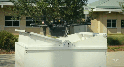 This is the Alta X: an emergency response delivery system that can be used to deliver an automated external defibrillator, Narcan and other lifesaving tools to those who need it via air. It has a flight time of 41.7 minutes. This drone folds to half its size with the push of a finger. It is designed to reduce vibration and improve footage when shooting.