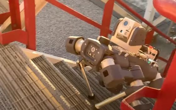 The ANYmal X is a quadruped robot that can automate inspections in oil and gas facilities. It can move up and down stairs, climb over obstacles and crawl into tight spaces. It can complete its mission without WiFi and GPS. Its payload offers visual, thermal, acoustic, and gas detection.
