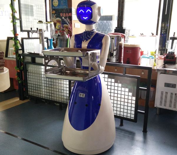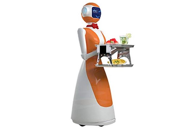Meet the AoBo LeLe: a robot waitress that can deliver food orders to customers at restaurants, hotels, and hospitals. It features WiFi, Bluetooth, and 4G connectivity. It lasts up to 9 hours on battery. This robot has touch, voice, and remote control operation modes.