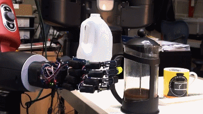 The hand is fully ROS compatible and ready for Python programming. It has an anodized aluminum core. This robotic hand is fully customizable and expandable. For instance, it can be enhanced with tactile sensors.