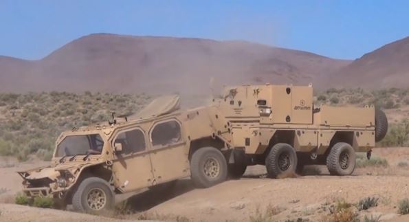 This vehicle transforms a 4×4 tactical wheeled vehicle into an 8×8. It has max payload capacity of 2.4 tons.