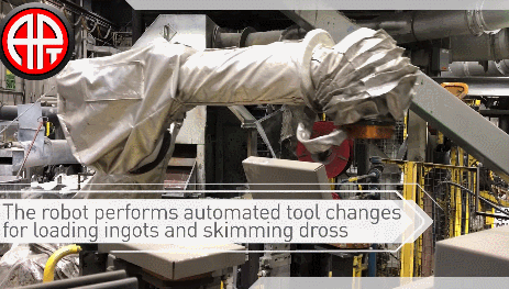 Automated Robotic Dross Skimming and ingot loading, courtesy of APT Manufacturing Solutions