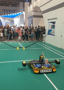 Robots are going to play many sports in the future, including table tennis and badminton. We had the chance to cover the Robomintoner here a while ago. The above GIF gives another view of the robot. The system relies on a camera and smart vision system to predict shots and keep up.