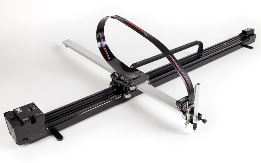 This is the Bantam Tools NextDraw 2234: a drawing and writing robot for artists and educators. It has a 23 x 32-inch drawing area. It comes with auto homing and more speed with its firmware update. This robot has a pen holder that can handle a variety of pens. It has a special software tailored for Inkspace. It works with Windows, Linux, and Mac devices.