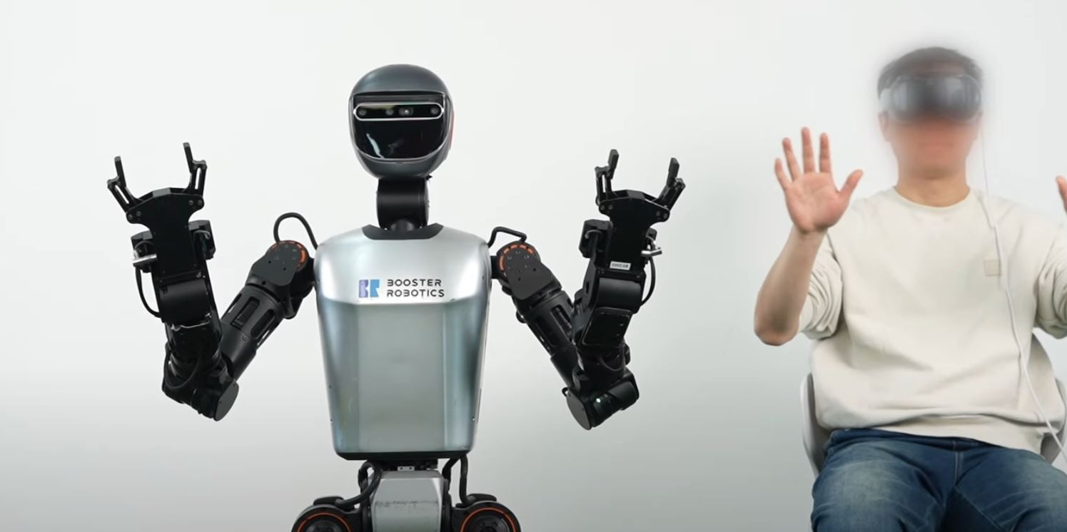In the past few weeks, we have covered plenty of videos of the Booster T1 humanoid robot performing a wide variety of moves. It is a 1.2m tall robot that can perform push ups, walk, perform Kung Fu and play soccer. This video shows the T1 being FPV teleoperated. The headset used in this video is a Vision Pro.