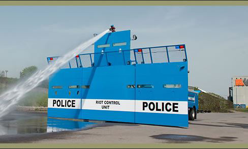 BOZENA Riot has a shield with a max width of 7.5m. It has a water tank with 3000 liters capacity.