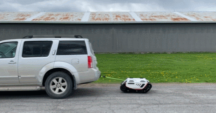 This robot has tracks to conquer muddy surfaces. It is IP52 rated. It may look small but this quite a powerful robot as you can see in the above video.