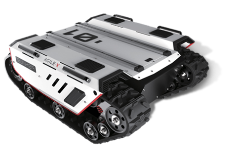 Meet the Bunker Robot: a crawler type robot that can adapt to rough terrain. It can overcome climbs up to 36 degrees. It also has 80kg payload capacity. This robot can be customized for various tasks. The side rails are removable for access to sensors, cameras, and other modules.