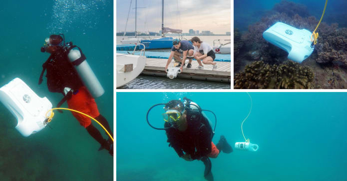 Meet the BW1: an underwater robot with a 1080p camera that lets you capture and explore the underwater world. It has a max depth rating of 100 meters. The battery life lasts 5 hours. The BW1 has simple app controls. You can interact with it with a Bluetooth controller and reel it in when disconnected using the tether.