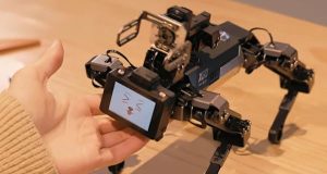 MEVIUS Metal Quadruped Robot Made with Items Ordered Through E-Commerce