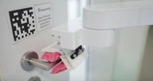 DeKonBot Mobile Disinfection Robot Wipes Door Handles, Elevator Buttons