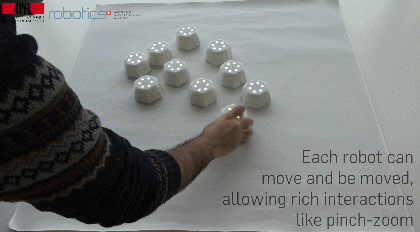 Here is a cool project that explores the idea of using robot swarms to teach science interactively. In the Cellulo project, swarm robots are used to visualize lessons. Each robot can move or be moved, so rich interaction and various movements are supported. 15+ robots can be moved in synchrony to perform various motions.