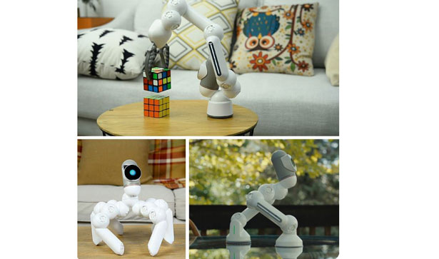 Clicbot has a graphical coding interface but more advanced users can graduate to Python. With modular building blocks (wheel, skeleton, sensors, mount, grasper, ….), it is easy for users to experiment with this bot.
