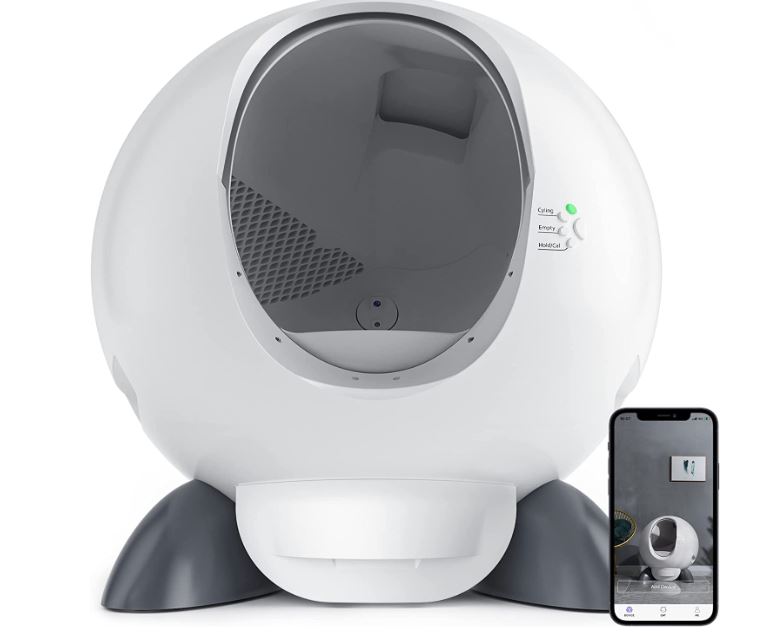 Here is another smart litter box that saves you time cleaning after your pets. The Coredy PL02 is a self cleaning litter box with app control. It also has a 1080p HD camera. It is smart enough to recognize multiple cats. This robotic litter box has smart sensors for safety.