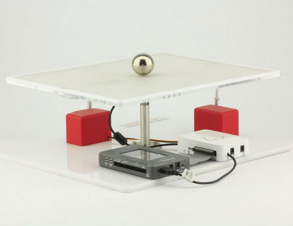 Meet the ACROME myCONTROL ball balancing table kit: a robotic table that can stabilize the ball on it, keeping it from dropping. It has 2 rotational degrees of freedom, with each controlled by an RC servo motor. You will be able to see the position data on a touchscreen display.