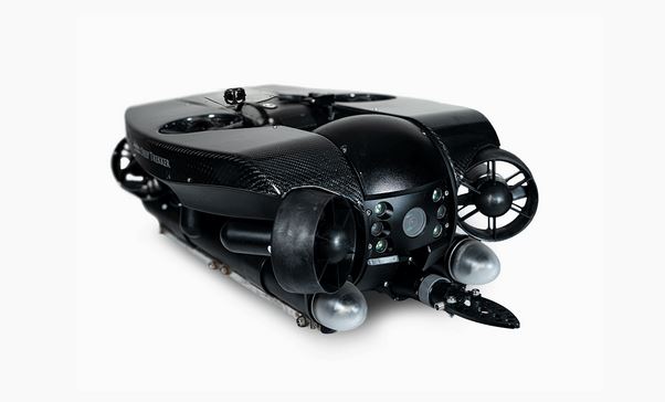 This ROV has 6 thrusters, two of which are vertically mounted for depth holding. It runs for up to 8 hours on batteries. Pilots will be able to view the position of the robot on a map.