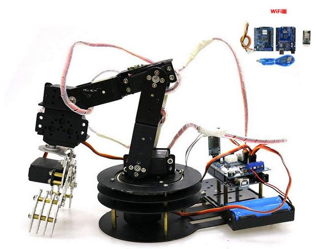 There is no better way to learn about robots than building and programming your own. The DoArm robotic arm has 5 DOF and WiFi control. It can grab objects from any direction with wrist motion of 120 degrees and base rotation of 270 degrees.