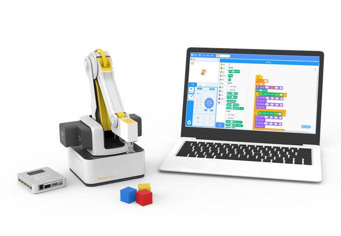 The external controller Magic Box offers one-hour battery life. It supports Bluetooth 4.2. Magician Lite weighs only 2.4kg. It has a repeatability of 0.2mm, payload of 0.25kg, and radius range of 340mm. The controller has 12 expansion interfaces.