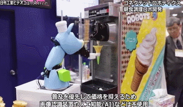 The robot can be easily programmed via drag & drop. It has IO ports for easy extension. The below video shows how Dobot Magician can be used to serve ice cream: