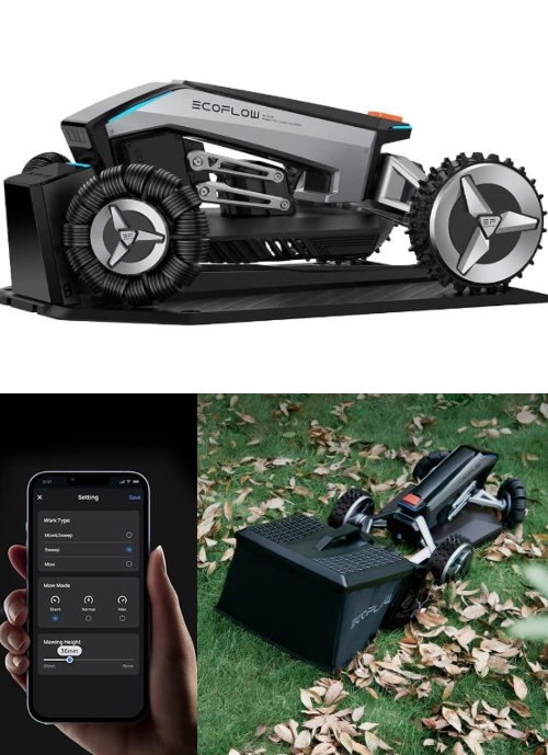 This robotic mower comes with app control. It comes with a sweeper kit to keep your yard tidy. The robot has a rain sensor, so it knows when to stop. It uses sensors and LiDAR to avoid obstacles intelligently.