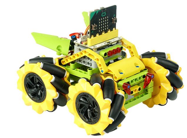 Here is another micro:bit based robot platform designed to introduce kids to visual programming. The Wonder Rugged Kit for Micro:bit can move in all directions with its mecanum wheels. It is ready for JavaScript, MicroPython, and MakeCode programming.