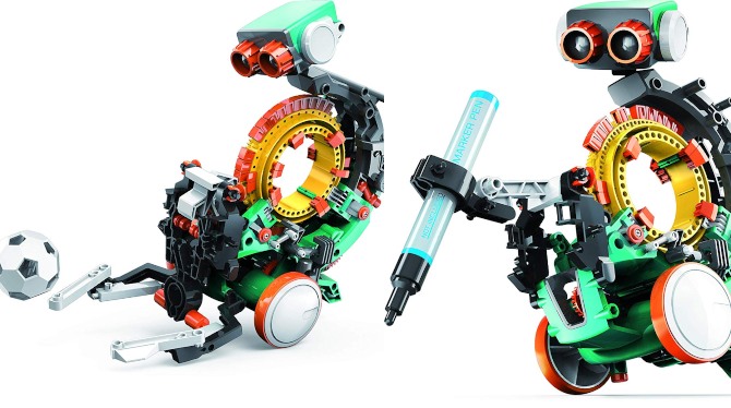 Here is another kit designed to get your kids familiar with basic coding concepts. The Elenco Mech-5 robot comes with a coding wheel which you can program by snapping coding buttons. This robot can be used as a drawing, forklift, gripper, throwing, and soccer bot. It has over 220 parts and provides your kids with an unplugged experience.
