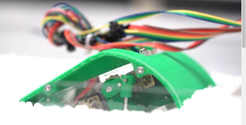 The above video shows this robot in action. As the researchers explain, they used fabrics to create a feathering mechanism to sweep through granular media.