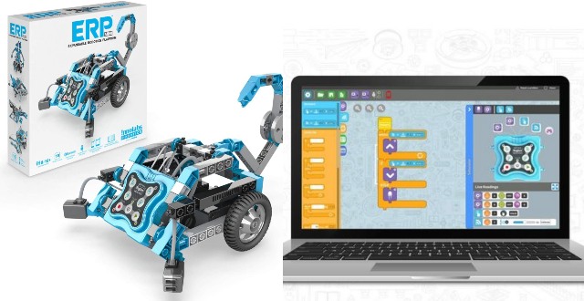 Here is another educational robotics kit that comes with everything your kids need to build 10 robots. The ERP Mini comes with step by step instructions and an animated 3D building app. The Keiro software allows users to program these robots via drag & drop.