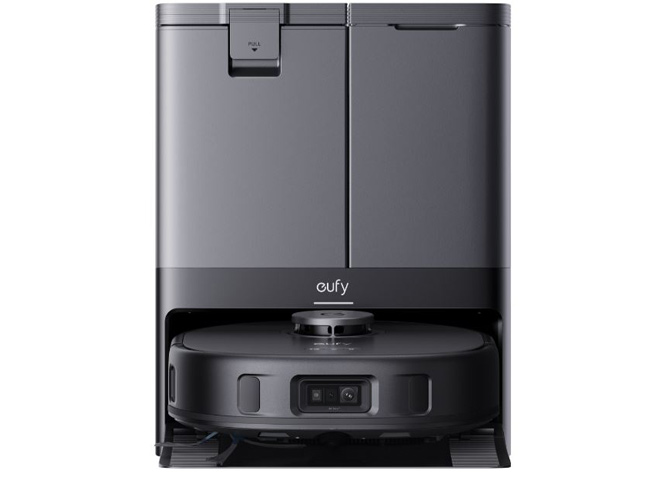 The eufy Introduces X10 Pro has dual rotating mops and auto-lift mopping. The eufy Clean app lets you put the robot on a schedule. Its base allows the robot to empty its dust bin and water tank. It also dries the mopping pads with 113F hot air.