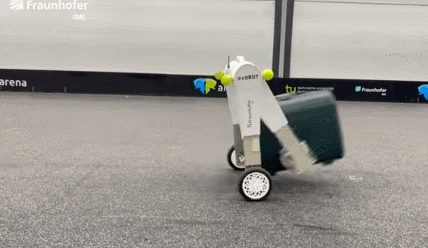 This is the evoBOT: a dynamically stable autonomous transport robot that can transport suitcases, groceries, and everything in between. It is based on inverse pendulum principle, so it is stable. It has a space saving design and keeps its balance even on uneven terrain. The below video shows it in action: