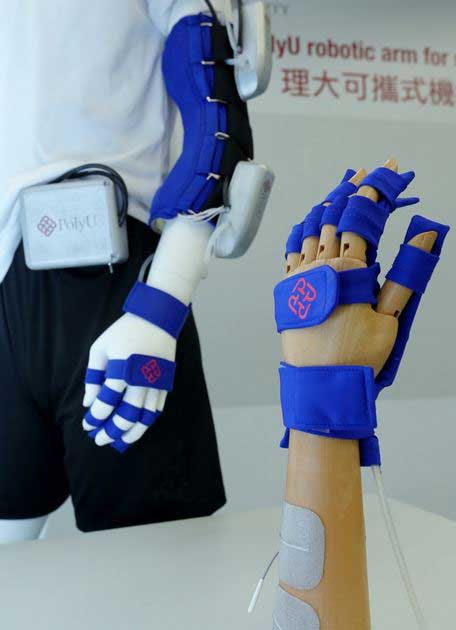 Here is another robotic arm that can help stroke patients recover faster. PolyU’s robotic arm has a lightweight design. The mobile exo-neuro-musculo-skeleton integrates exo-skeleton, soft robot and exo-nerve stimulation technologies. It weighs 300g and runs on 12V battery supply.