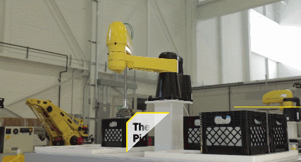 FANUC SR-20iA SCARA Robot picks and places crates of water jugs