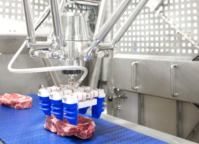In the past few years, we have covered plenty of industrial robots designed to handle food items. FANUC’s DR-3iB/6 STAINLESS Robot is also worth a look: it is a stainless steel food-grade delta robot for picking and packing food products. It is IP69K rated.