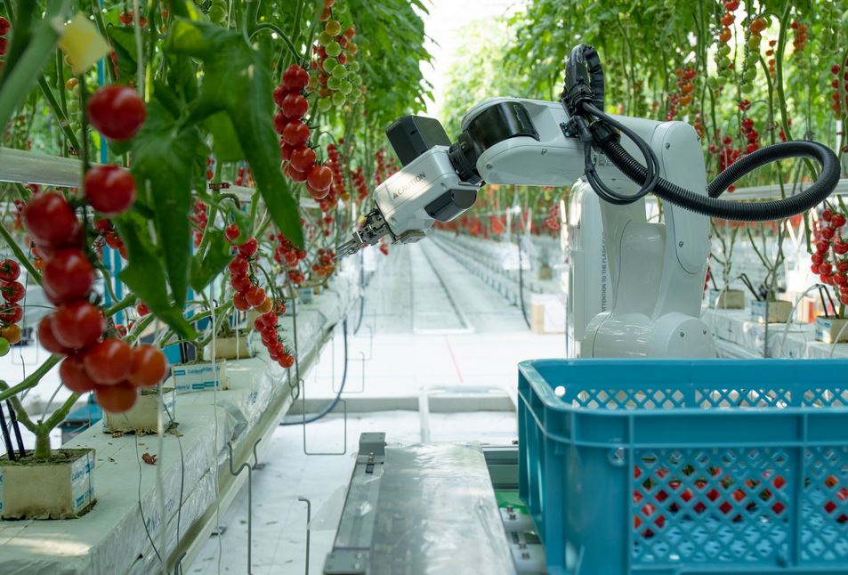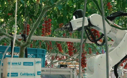 Meet the Faro: a cherry tomato picking robot that can take on harvesting tasks in large-scale gardening facilities. It uses its arm to grab and remove ripe tomatoes and put them in a basket. This robot is designed to work near humans. Faro has a modular design.