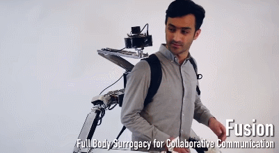 Here is a wearable robot that sits on your back and allows you to share your point of view with others. Fusion has two robotic arms mounted to give the wearer a hand. They can be used in remote assisting and collaboration. Using this system, the operator can communicate and collaborate with the wear from a remote location.