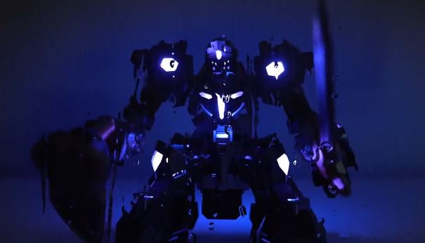 This is the Ganker EX Pro: an agile combat robot with a wearable controller that mimics your movement. In comparison to its predecessor, it is faster, stronger, and lasts longer on battery. It has 9 servo motors to mimic human motion. It can move 360-degrees at 5m/s.