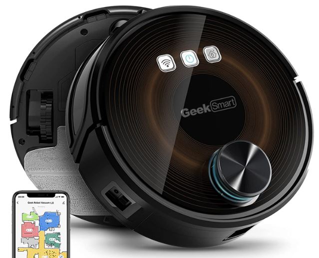 This is the Geek Smart L7: a WiFi connected robot vacuum and mop with LDS navigation that cleans your floors without you having to break a sweat. This app controlled robot has 2700pa of suction power and runs for 130 minutes on battery. It supports selective room cleaning.