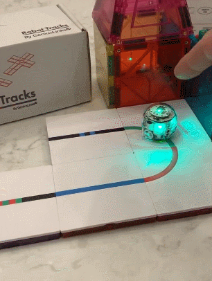 Ozobots are fun to play on their own. With the GeniusLinks Tracks, you can have even more fun with these bots. These are plastic inserts that fit into Playmags magnetic tiles, each with a line or code that your bots will be able to read. You can move tiles to make different layouts.