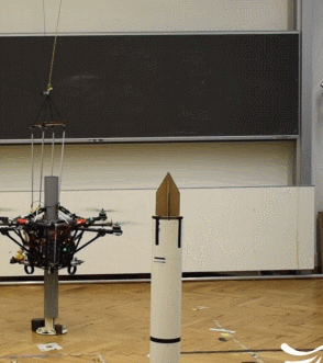 This drone can transport poles up to 2m in length. It weighs 3kg and has under 5cm placement accuracy.