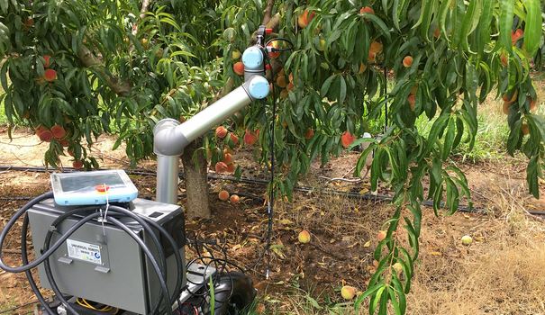 Here is an intelligent robot that can handle the task of thinning peach trees. GTRI’s Robot uses LiDAR & GPS to self navigate through peach orchards. It uses a 3D camera to determine which peachlets need to be removed to allow bigger and better peaches to grow. It grabs them using a claw-like device.