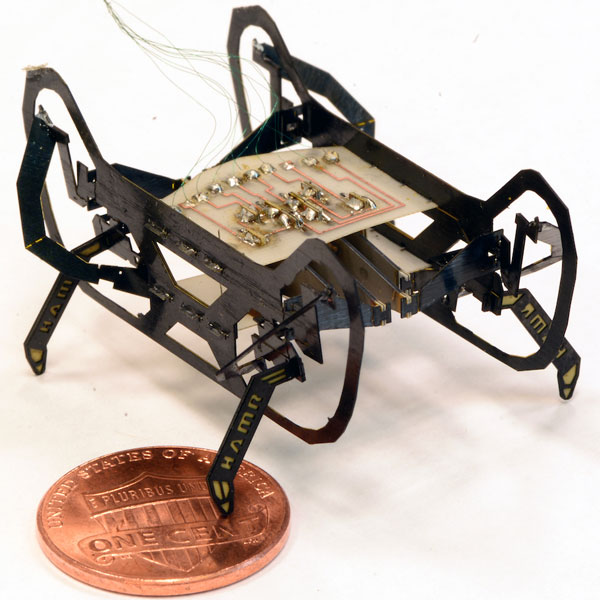 Here is another cockroach-inspired robot that can be equipped with sensors for search & rescue missions and inspections of dangerous areas. The HAMR robot can run at high speeds, jump, climb, and turn sharply. It can run at about 10.5 body lengths in seconds and is capable of carrying 2 times its own bodyweight.