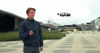 The system has 3 modes to accommodate pilots of all ability level. The haptic feedback mechanism in the handle gives drone pilots a more exciting flying experience.