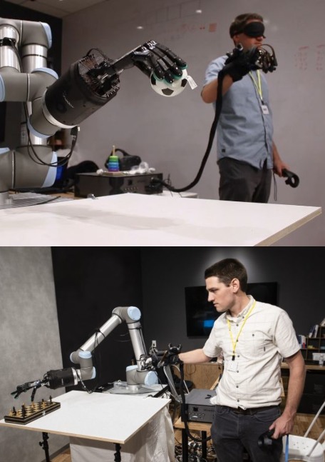Here is a haptic telerobot hand system that combines a Shadow robotic hand with SynTouch BioTac sensors and HaptX gloves to offer remote touch and dexterity. The SynTouch BioTac sensor can sense everything your fingers can feel, including force and temperature. The data captured by the gloves control the movements of the hand.